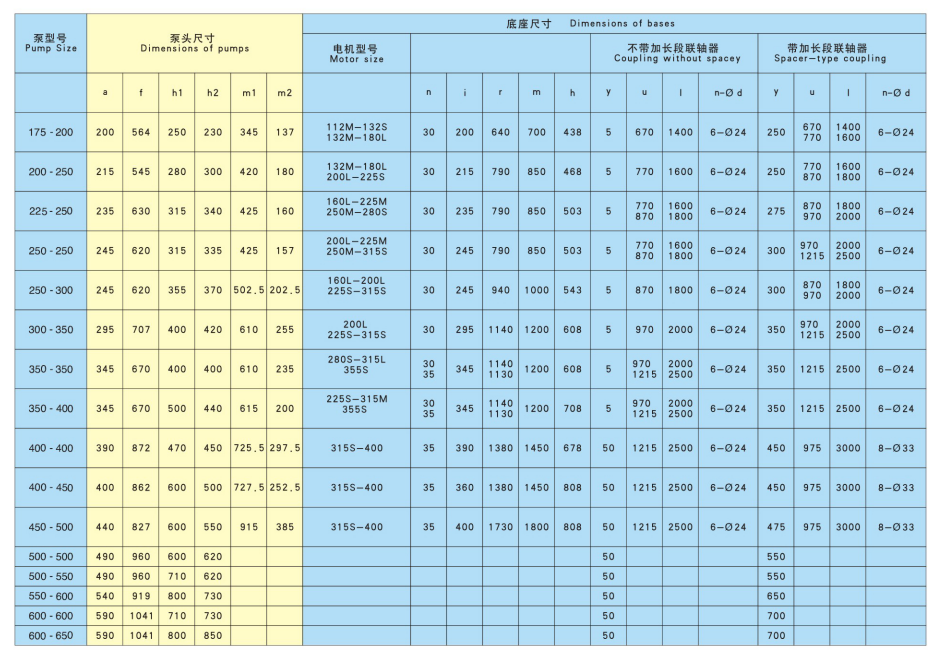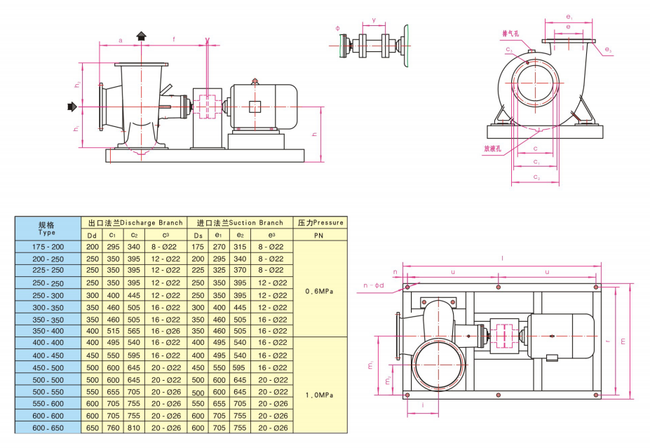 ■規(guī)格在350-400以?xún)?nèi),法蘭壓力等級(jí)為1.0Mpa,大規(guī)格泵的法蘭壓力等級(jí)為0.6Mpa。