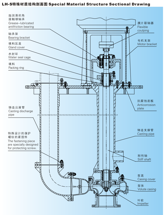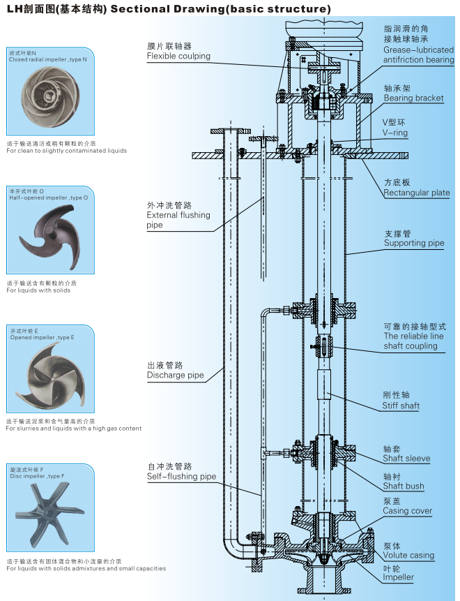 LH系列泵采用特殊的設(shè)計(jì),可用于各種苛刻條件下各種介質(zhì)的輸送,可用于敞口的污液池或密閉的帶壓容器,污水污液或化學(xué)液體排放,常溫或高溫液體的輸送。